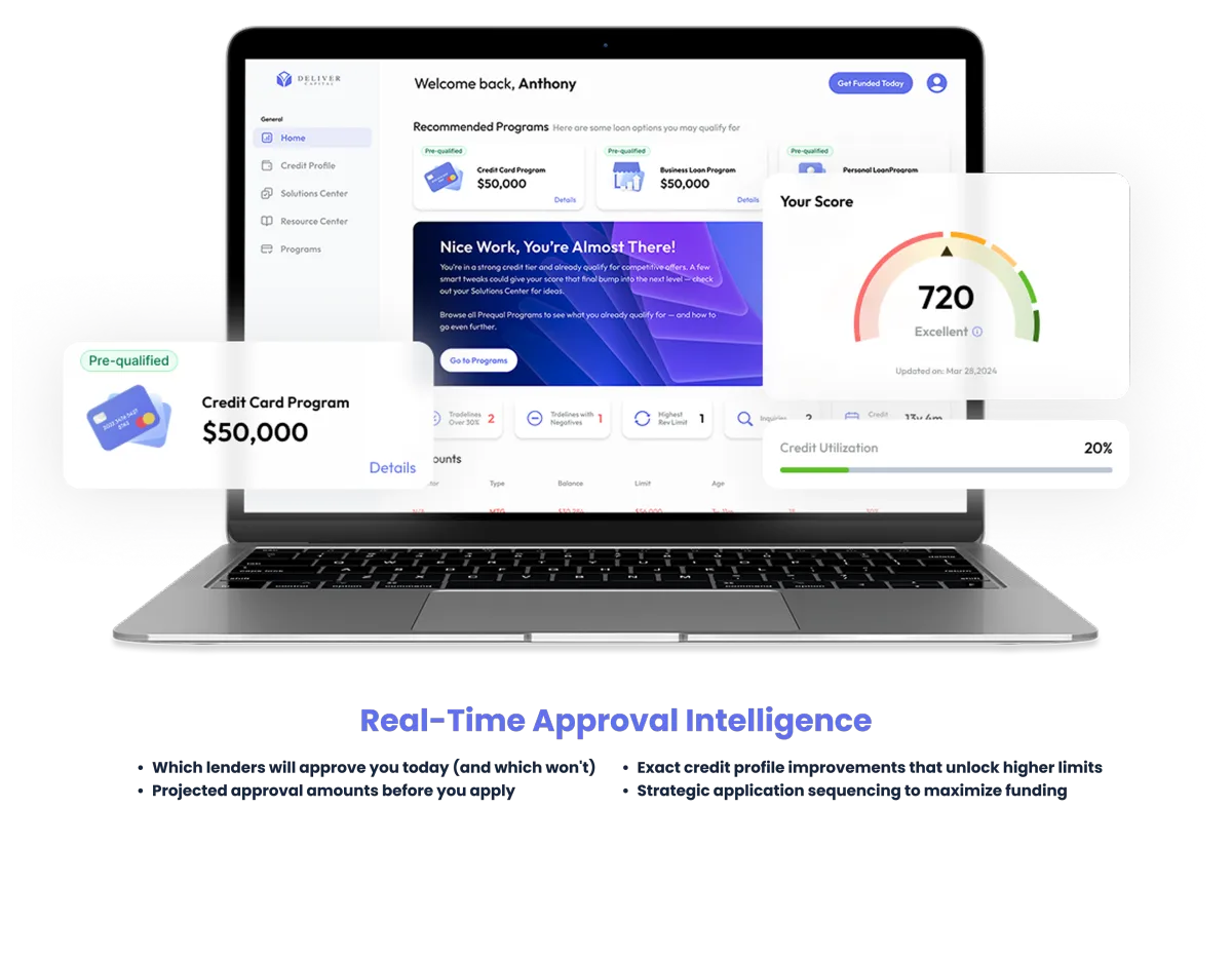 With over 20 years in finance, 500+ banking relationships, and $100M+ secured for clients, Anthony built Deliver Capital on four proven pillars:
